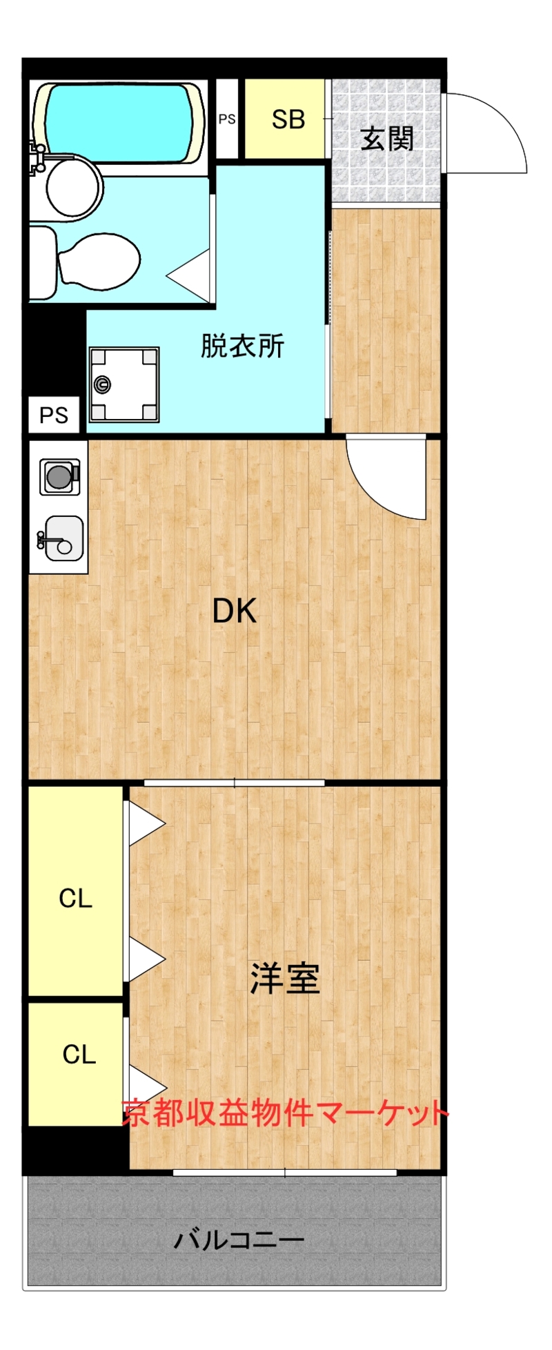 三条通面す 8階建て7階部分 南向き 1DK 1,900万円